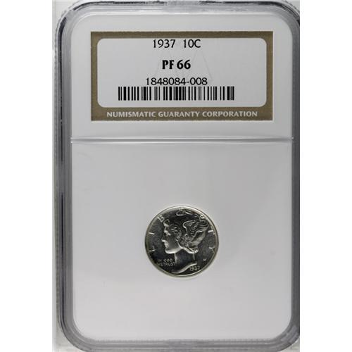 <B>1937<10C> PR66 NGC.</B></I> The deep mirrors offer some contrast with the devices. Dark toning is scattered around the peripheral lettering, but otherwise the coin is untoned.<BR><I>From The Redfjord Collection.</B></I>