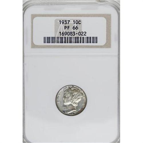 <B>1937 10C PR66 NGC.</B></I> Lightly toned, although dappled lilac and blue-green freckles appear on each side. A penetratingly struck Premium Gem with impeccable preservation. Housed in a prior generation holder.<BR><BR><B>Coin Engraver:</B> Adolph A. Weinman<BR><BR><b>Shipping:</b> Coins & Currency (<a target="_blank" href="http://www.heritageauctions.com/common/shipping.php">view shipping information</a>)