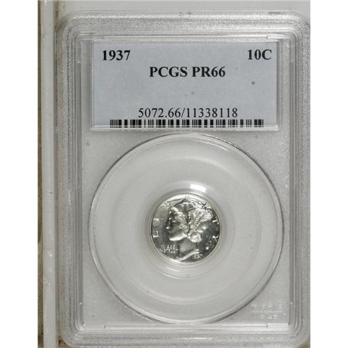 1937 10C PR66 PCGS. This early proof Mercury dime has