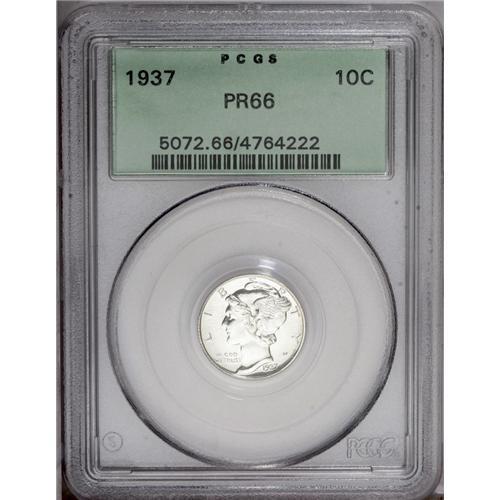 <B>1937<10C> PR66 PCGS.</B></I> This untoned and exquisitely struck older holder Premium Gem is unperturbed by contact and offers a hint of cameo frost on the reverse. Low mintage relative to later proof dates of the type.