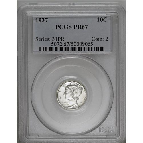 <B>1937<10C> PR67 PCGS.</B></I> A razor-sharp and satiny Superb Gem with only a hint of gold toning on each side. Immaculate save for a tiny tick on the bust truncation.<BR><I>From The David L. Goodwin Collection.</B></I>