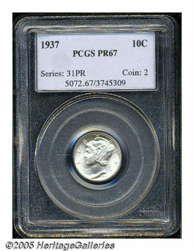 1937 10C PR67 PCGS. Fully struck with glittering,