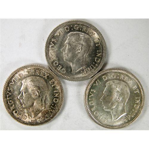 Canada Ten Cents 1937, 1938 and 1940, all Choice Uncirculated and pale to lightly toned