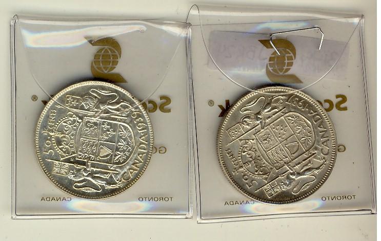 1937 & 1939 50¢. Lot of 2 coins AU in average.