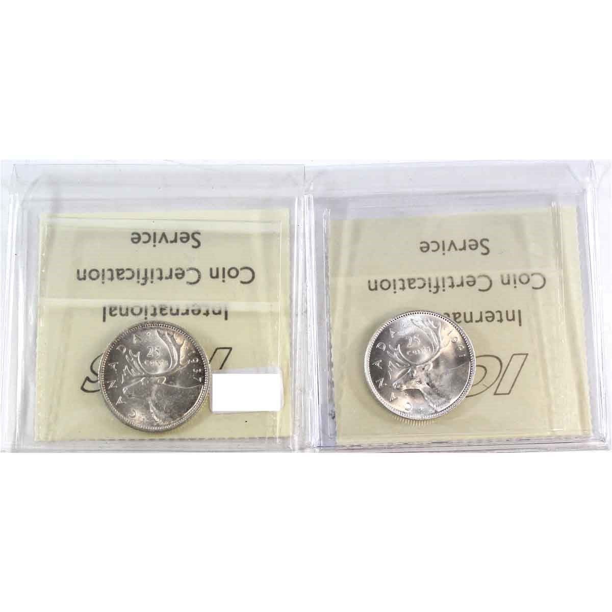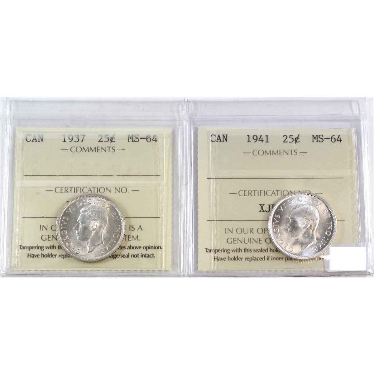 1937 & 1941 Canada 25-cent ICCS Certified MS-64. 2pcs