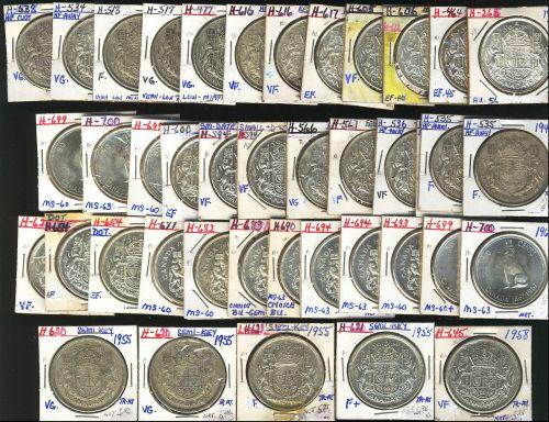 1937, 1944, 1946, 1947 CR (2), 1949 (6), 1950 des., 1950 no des., 1953 SD (2), 1953 LD, 1953 Mule (2), 1954 (3), 1955 (5), 1958, 1958 dot (2), 1961, 1963 (3), 1965, 1966 (3), 1967 (5). Grades vary from VG-8 to MS-63. Lot of 42 pieces.