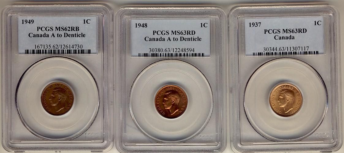 1937 & 1948 1¢ PCGS MS63RD and 1949 A To Dent 1¢ PCGS MS62RB