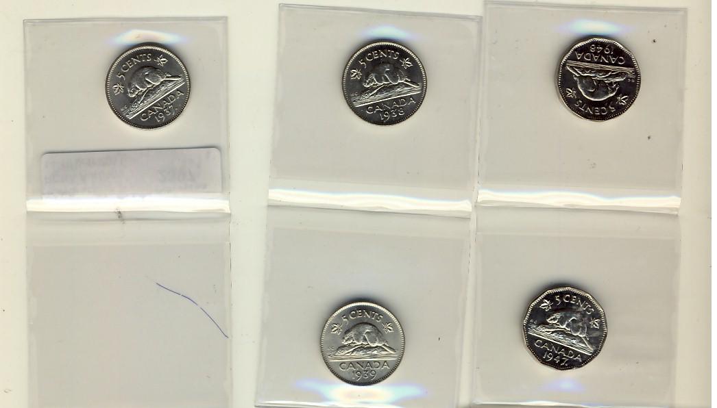1937-1948 5¢ all BU. Includes 1937, 1938, 1939, 1947ML & 1948. Should be viewed.