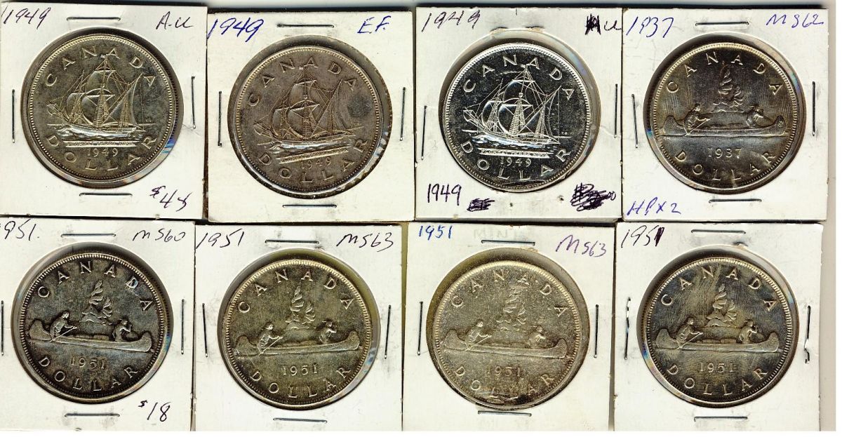 1937, 1949(3) & 1951(4) $1. Lot of 8 coins all AU.
