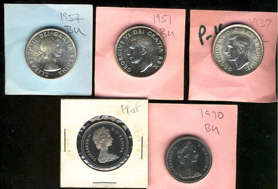 1937, 1951, 1957, 1970, 1981 50¢. Lot of 5 coins. MS-60 to Proof.