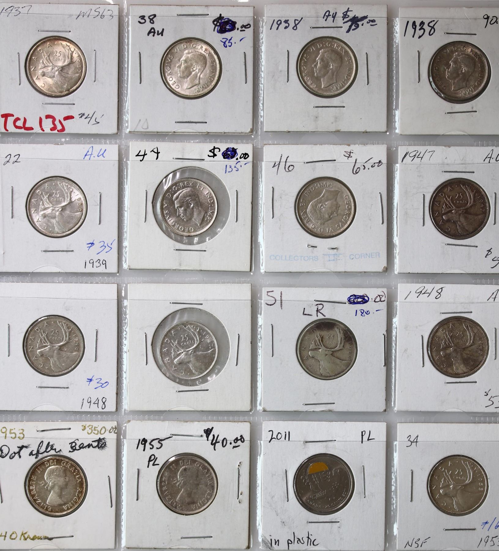 1937-1953 25¢ All VG to Proof-Like. Average AU. Lot of 16 coins.