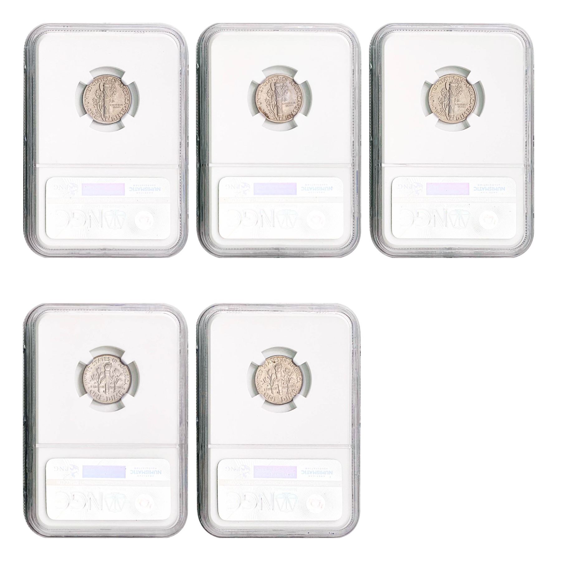 1937-1958 GEM BU US Silver Dime Lot [5 Coins] NGC MS65-66 FSB