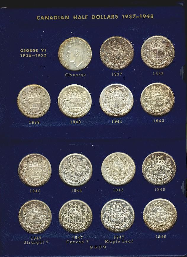 1937 - 1967 50¢ Set. Complete set in Whitman holder, with 4 extra pcs including a 1950 No des and 3