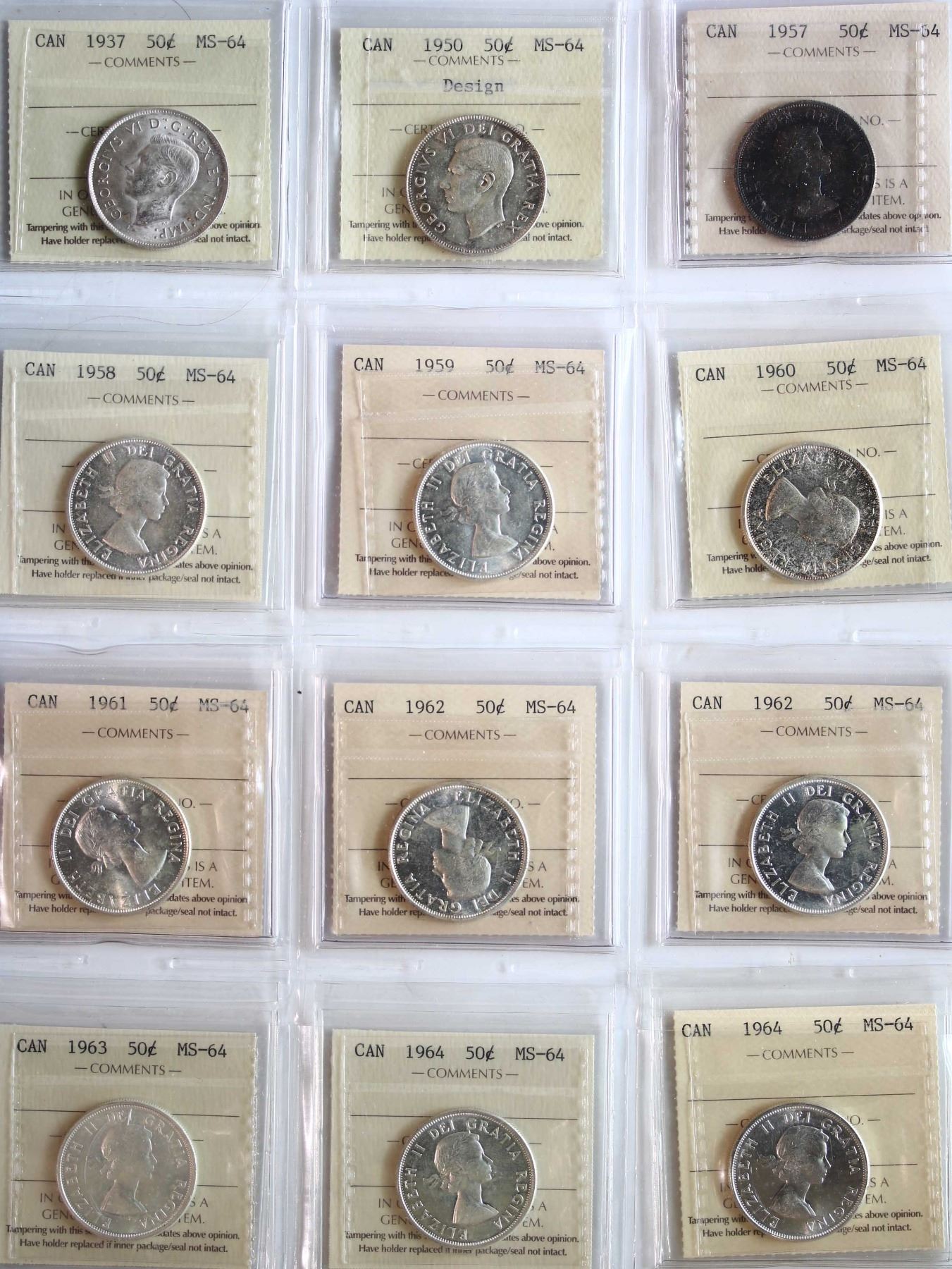 1937-1984 50¢ All 20 coins ICCS Very Choice Mint State-64.