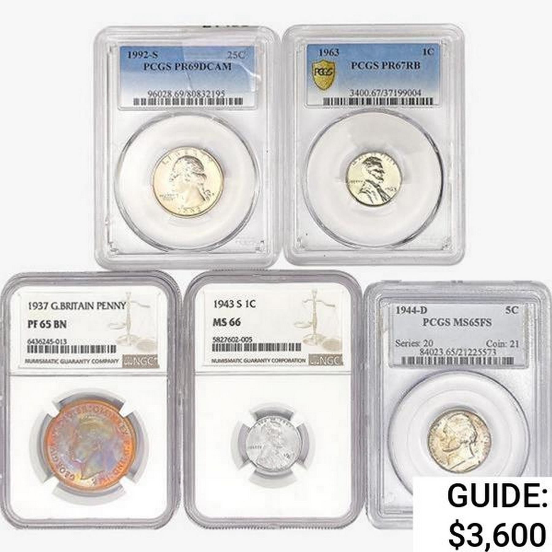 1937-1992 [5] Varied Coinage PCGS/NGC PF/MS