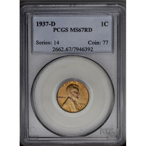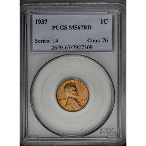1937 1C MS67 Red PCGS, well struck, vibrant luster, bl