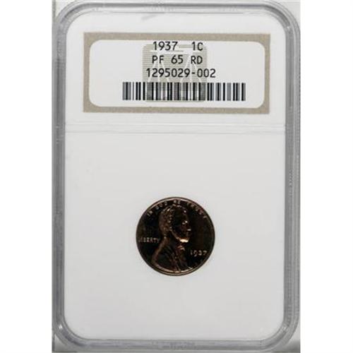 <B>1937 1C PR65 Red NGC.</B></I> NGC Census: (147/92). PCGS Population (360/173). Mintage: 9,320. Numismedia Wsl. Price for NGC/PCGS coin in PR65: $285. (#3338)<BR><BR><B>Coin Engraver:</B> Victor D. Brenner<BR><BR><b>Shipping:</b> Coins & Currency (<a target="_blank" href="http://www.heritageauctions.com/common/shipping.php">view shipping information</a>)