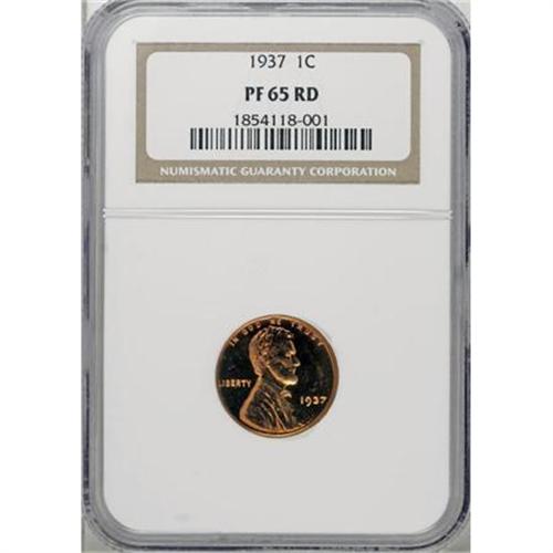 <B>1937 1C PR65 Red NGC.</B></I> NGC Census: (146/93). PCGS Population (360/173). Mintage: 9,320. Numismedia Wsl. Price for NGC/PCGS coin in PR65: $285. (#3338)<BR><BR><B>Coin Engraver:</B> Victor D. Brenner<BR><BR><b>Shipping:</b> Coins & Currency (<a target="_blank" href="http://www.heritageauctions.com/common/shipping.php">view shipping information</a>)