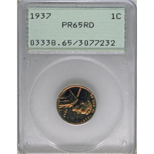 <B>1937 1C PR65 Red PCGS.</B></I> PCGS Population (356/169). NGC Census: (142/88). Mintage: 9,320. Numismedia Wsl. Price for NGC/PCGS coin in PR65: $240. (#3338)<BR><BR><B>Coin Engraver:</B> Victor D. Brenner<BR><BR><b>Shipping:</b> Coins & Currency (<a target="_blank" href="http://www.heritageauctions.com/common/shipping.php">view shipping information</a>)