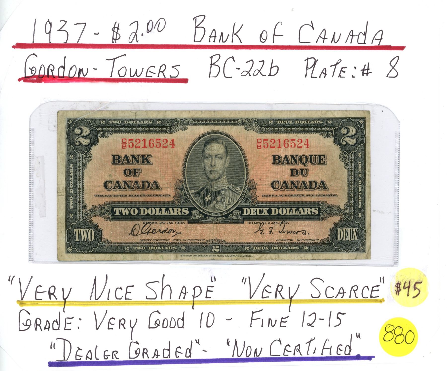 1937 $2.00 Bank of Canada Gordon-Towers signaturesD/B prefix
