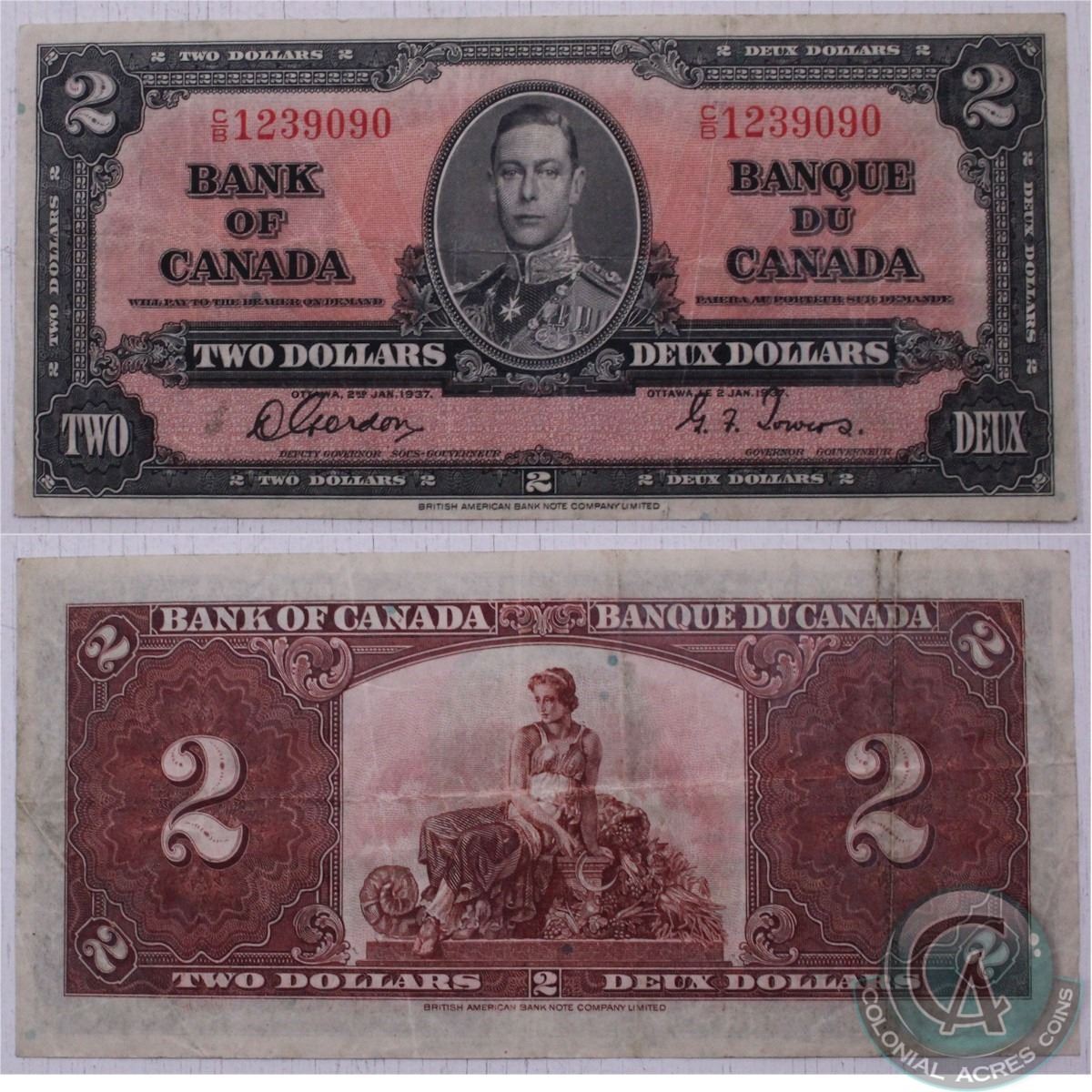 1937 $2.00 note with Gordon-Towers signatures.