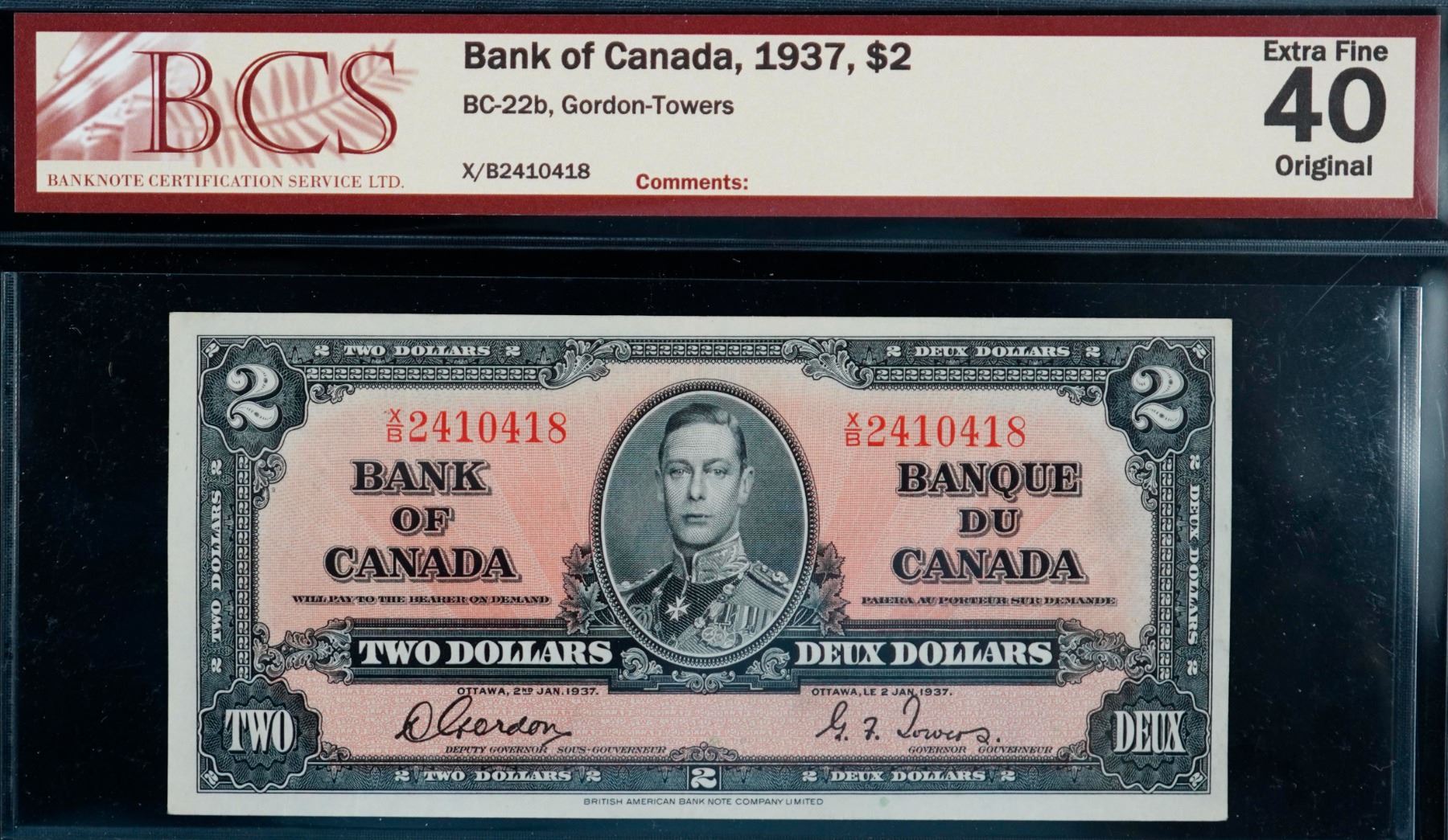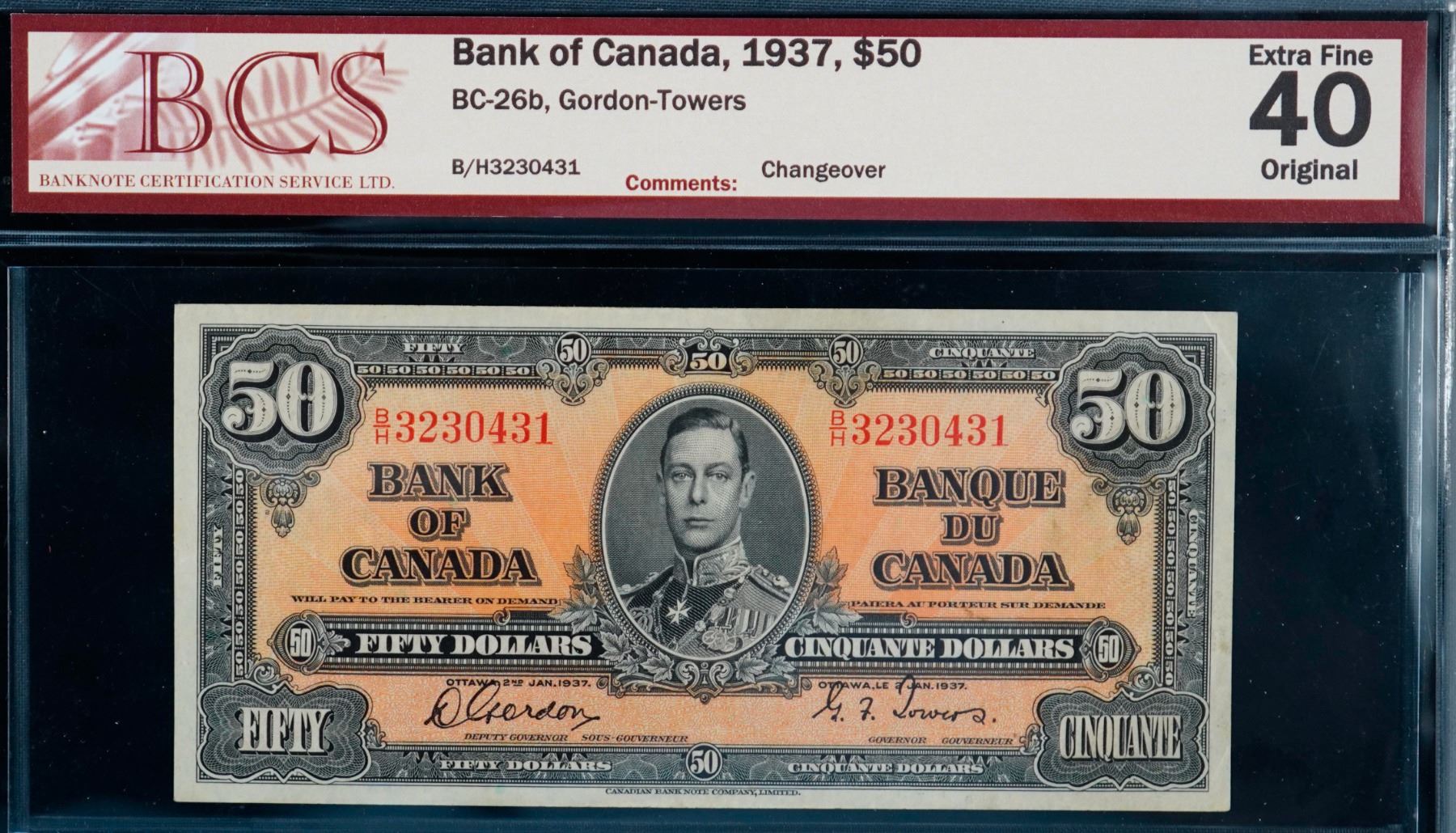 1937 $2, $10 & $50 BC-22b, BC-24c, BC-26b, all 3 notes BCS Extra Fine-40 to Choice Extra Fine-45