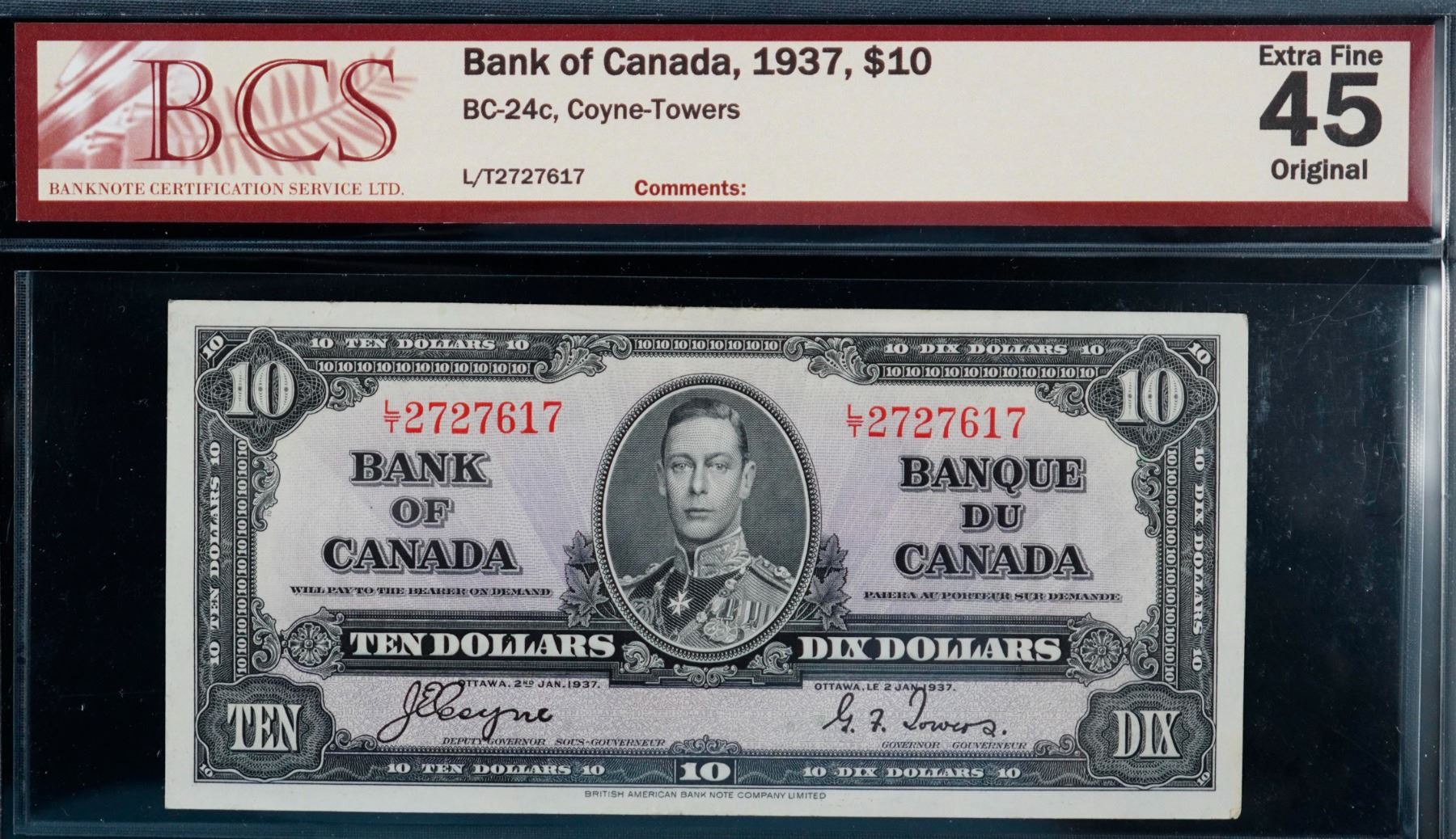 The cataloguer has taken every reasonable measure to ensure that all of the lots in this sale are as described and genuine. All raw coins and banknotes have been graded by the cataloger or the auction house which represent our best professional opinion. To grade coins and banknotes, we use Canadian grading standards, 42 years of experience and good conscience. However, grading is a subjective description in the opinion of the cataloger or the auction house. Among experts there are often differences of opinion on the grading and the eye appeal of a coin. The strike and the state of preservation are often debated. The Canadian Numismatic Company acts as an agent between consignors and buyers. The Canadian Numismatic Company does not guarantee that any coin or banknote cataloged will meet the standards, or the grade, of any third party grading companies. No warranty, whether impressed or implied. Items are as is, no warranty given. We cannot accept responsibility and waive all liability resulting in financial losses, and or incidentals accruing from the sale of any items, nor can we guarantee that items graded by third party services will grade the same if submitted to a different grading service or re-submitted to the same company. Statements by The Canadian Numismatic Company regarding the condition, the eye appeal, the strike and the population of items are for guidance only. All lots offered are sold "AS IS". Title to all lots remains with the auction house until paid for in full by the purchaser. But they are held at the risk of the purchaser once the time of the sale.