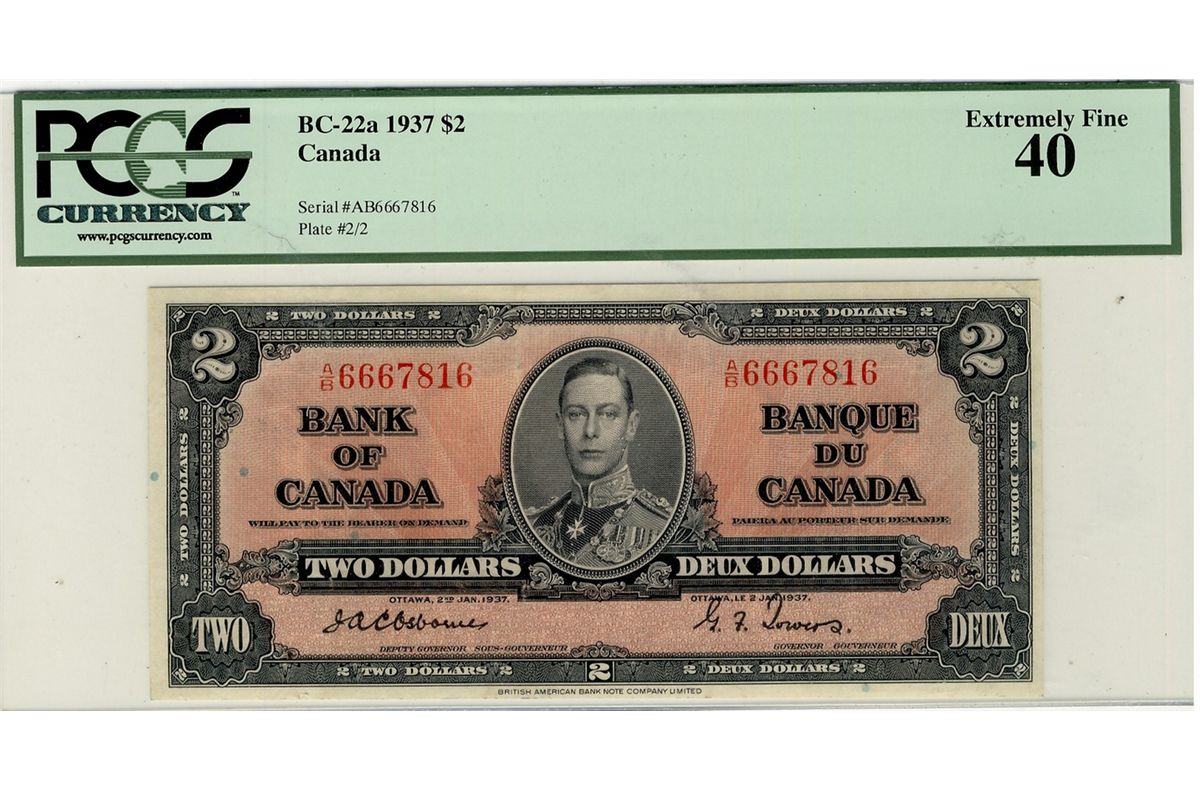 1937 $2 BC-22a #A/B6667816 PCGS EF40.