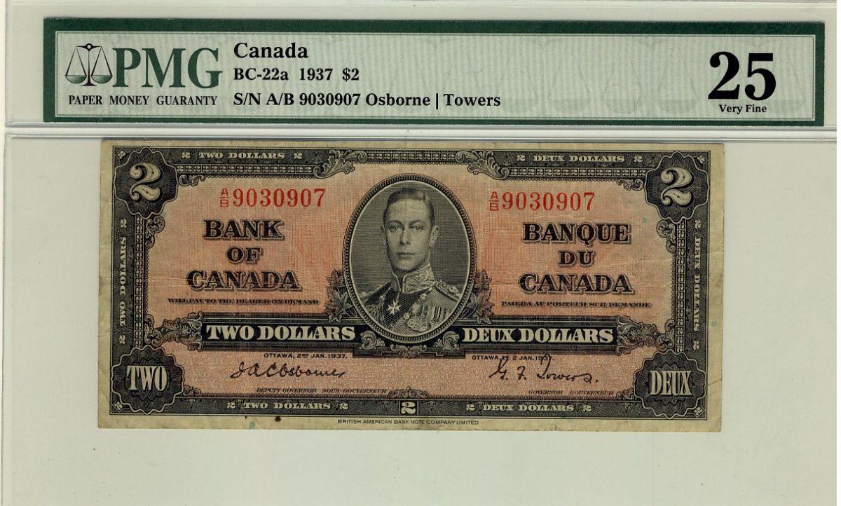 1937 $2 BC-22a #AB9030907 Osborne. PMG VF25.