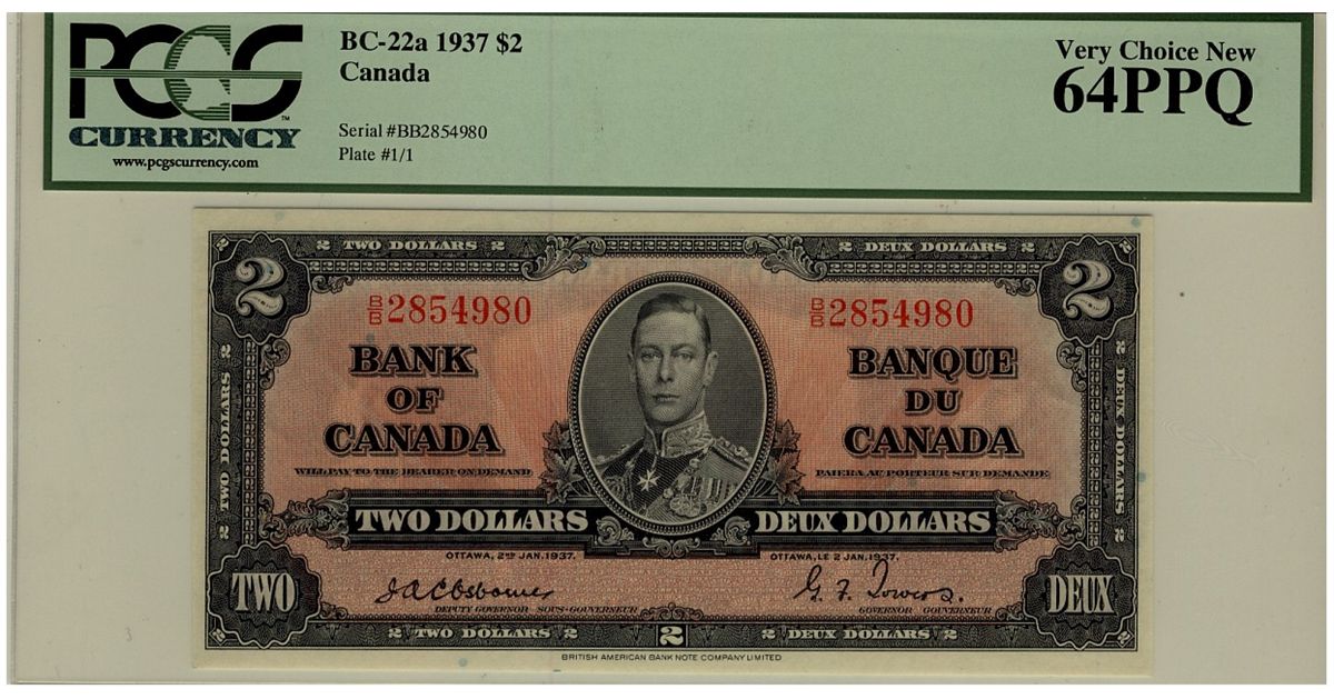 1937 $2 BC-22a B/B2854980 PCGS UNC64PPQ Choice and attractive.