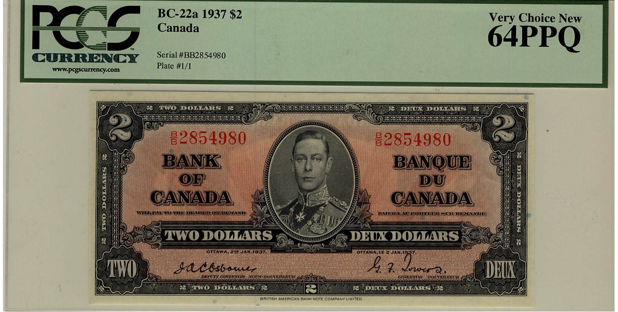 1937 $2 BC-22a B/B2854980 PCGS UNC64PPQ