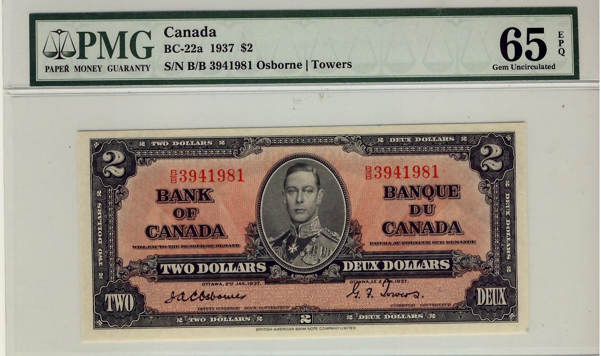 1937 $2 BC-22a B/B3941981 PCGS UNC65EPQ