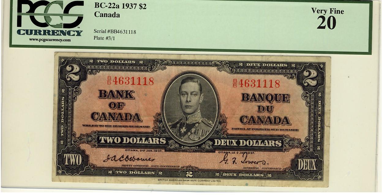 1937 $2 BC-22a B/B4631118 PCGS VF20