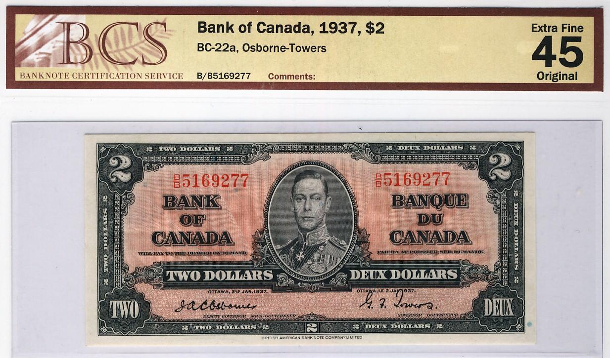 1937 $2 BC-22a #B/B5169277 BCS EF45 Original.