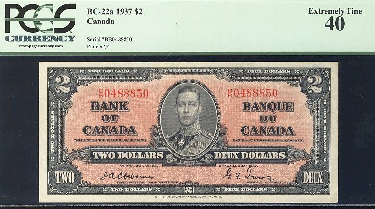 1937 $2 BC-22a #BB0488850 PCGS EF40.