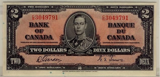 1937 $2 BC-22b #CB3049791. AU/UNC with full colours.