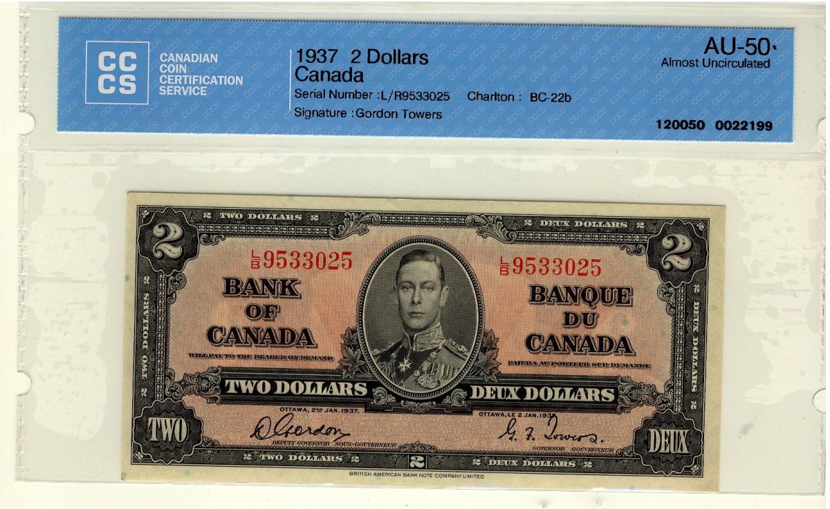 1937 $2 BC-22b /LB9533025 CCCS AU50