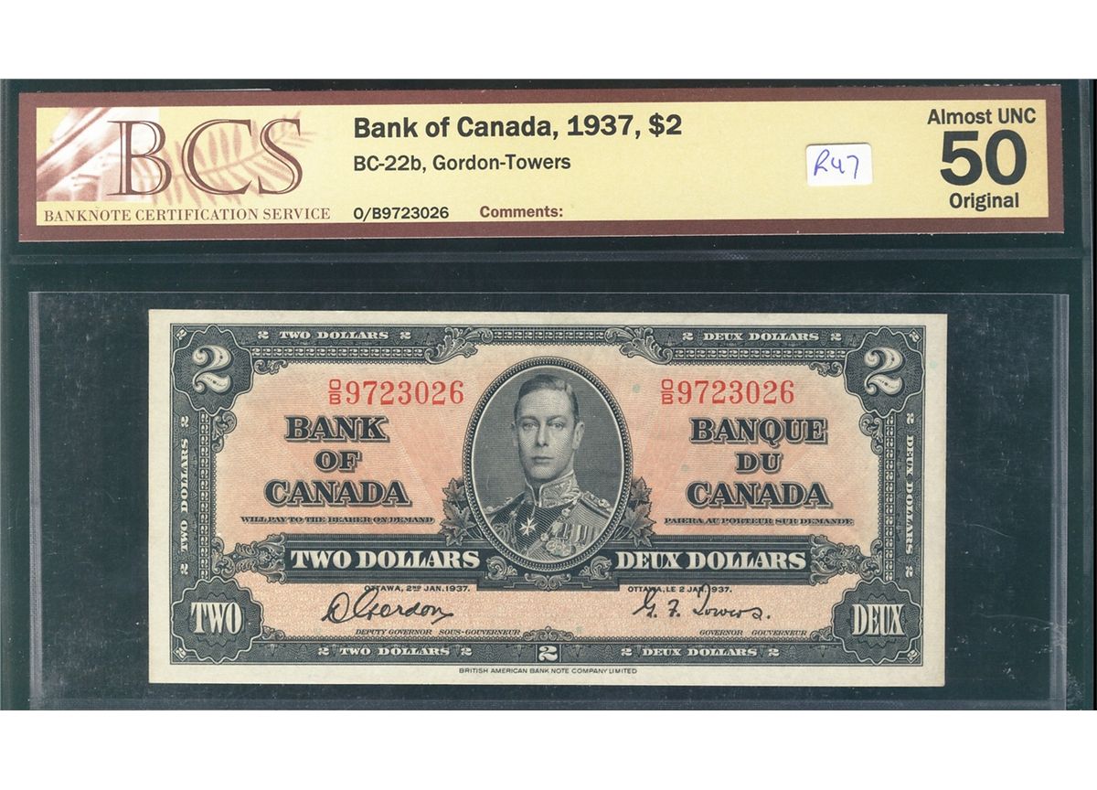 1937 $2 BC-22b #OB9723026 BCS AU50 Original.