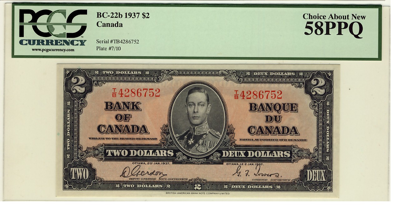 1937 $2 BC-22b T/B4286752 PCGS AU58PPQ