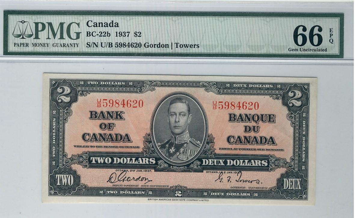 1937 $2 BC-22b #UB5984620, PCGS Gem UNC66. Superb example.