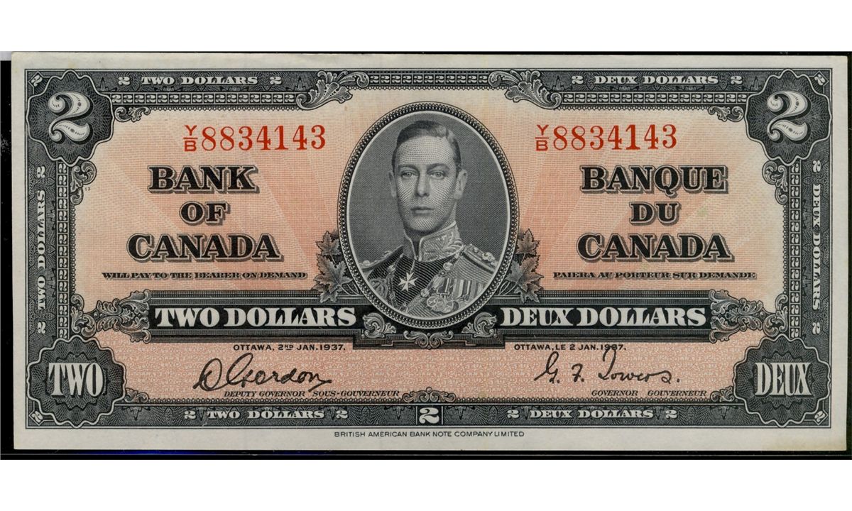 1937 $2 BC-22b #YB8834143. Crisp UNC issue.