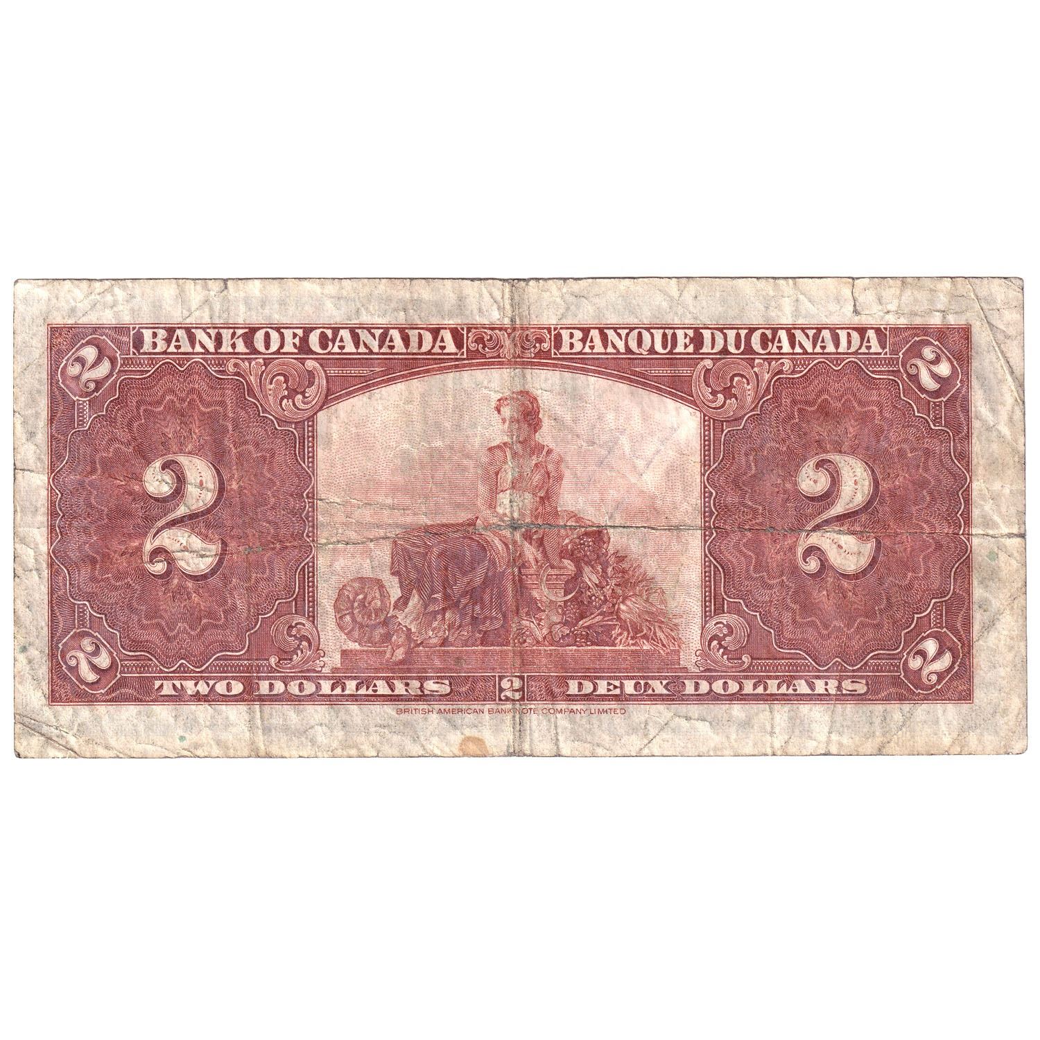 1937 $2 BC-22c, Bank of Canada, Coyne-Towers, K/R0335915, Fine. Note contains some tears and a hole