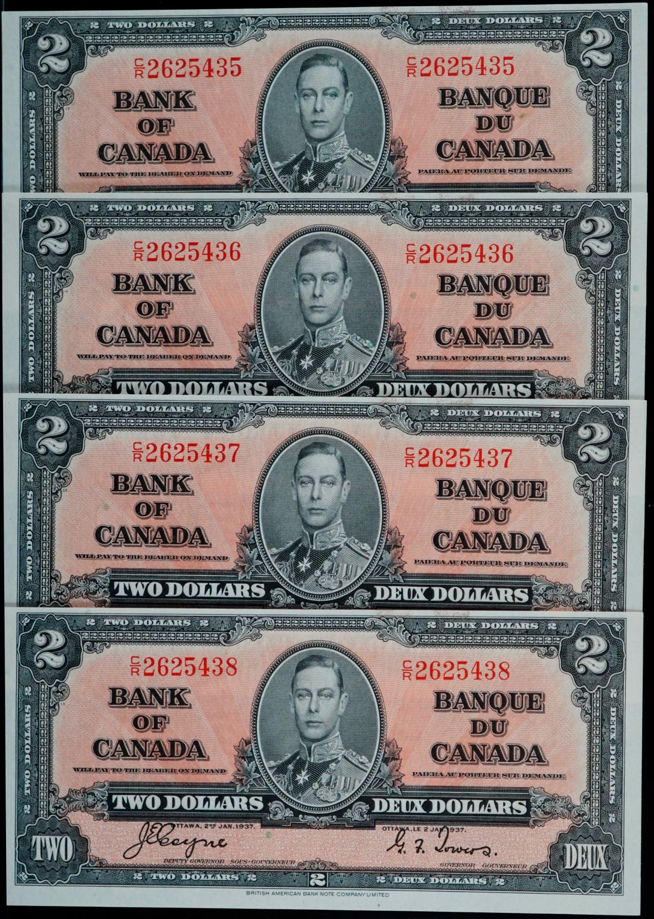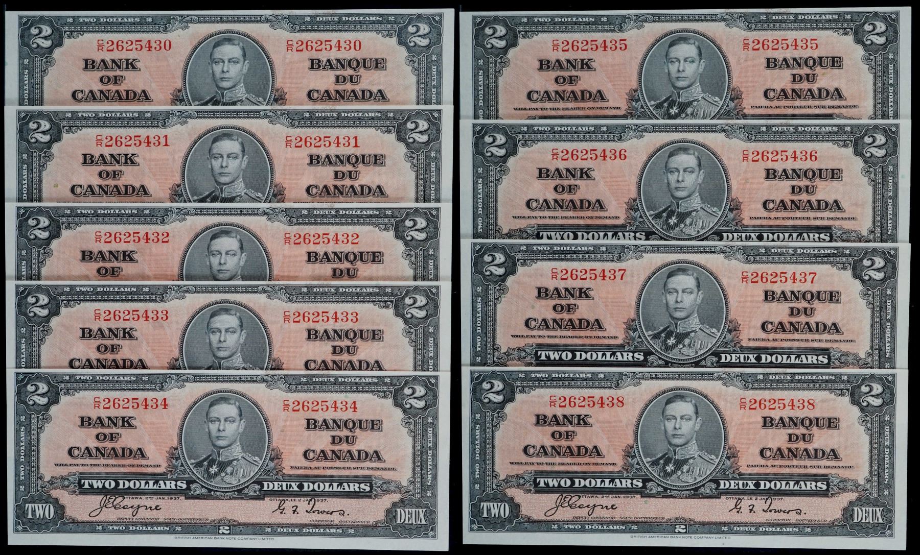 1937 $2 BC-22c #C/R2625430-5438, Lot of 9 consecutive notes. All Unc to Choice Unc.