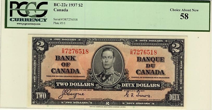 1937 $2 BC-22c D/R7276518 PCGS AU58