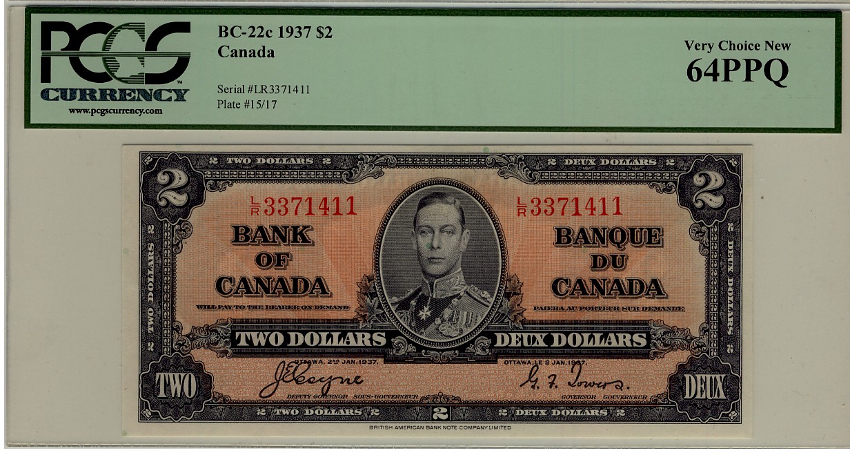 1937 $2 BC-22c L/R3371411 PCGS UNC64PPQ