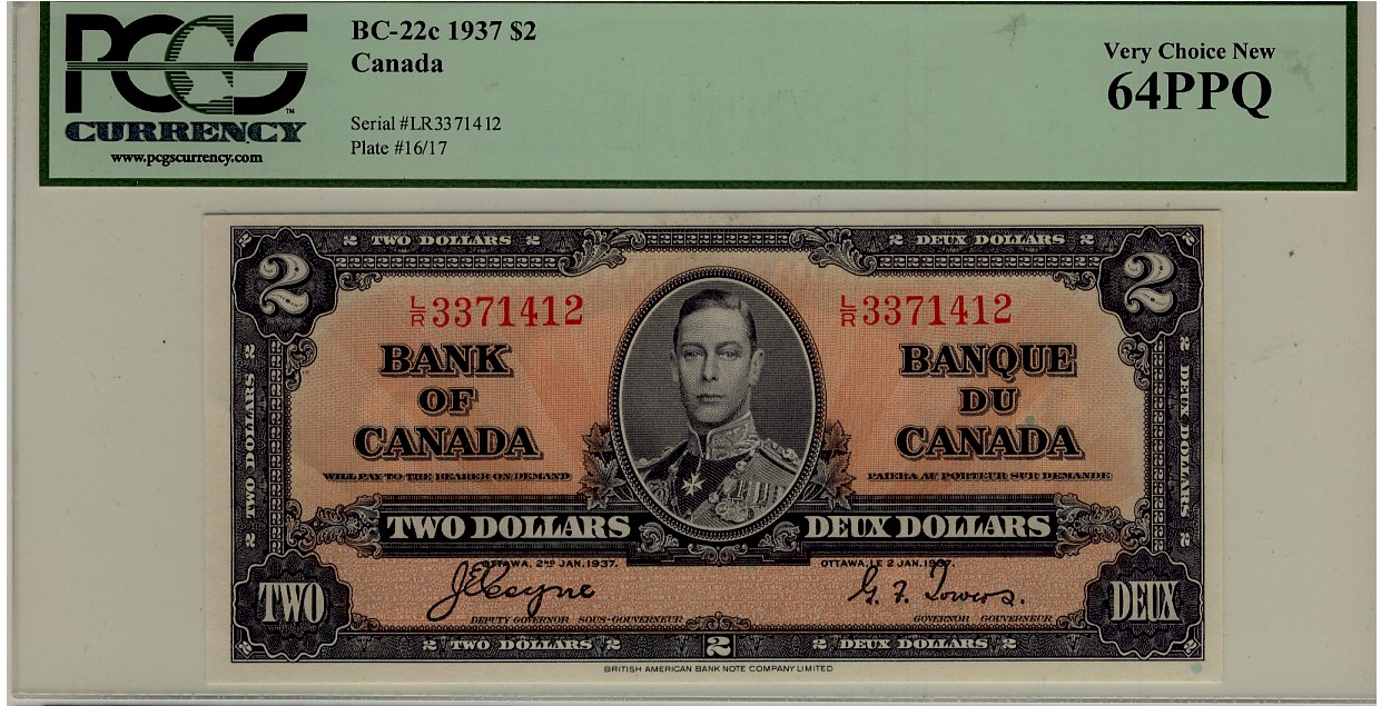 1937 $2 BC-22c L/R3371412 PCGS UNC64PPQ