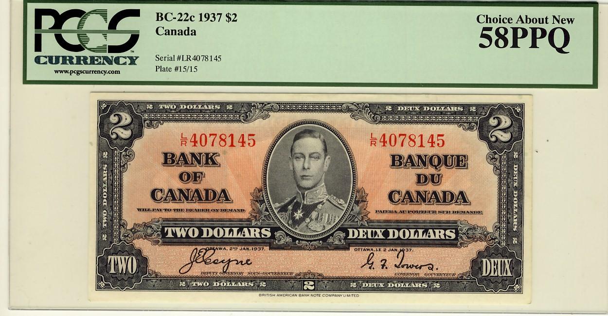 1937 $2 BC-22c L/R4078145 PCGS AU58PPQ