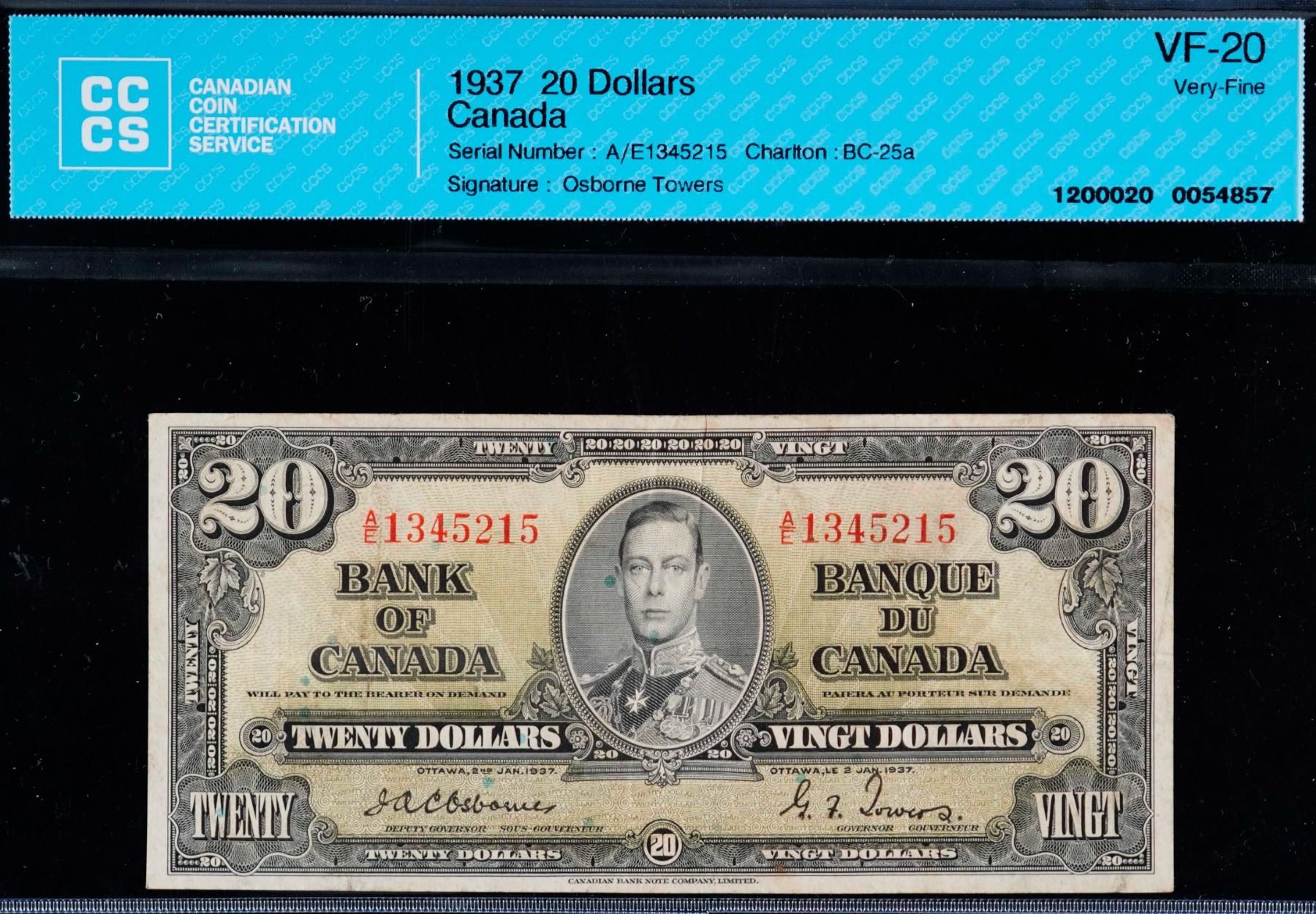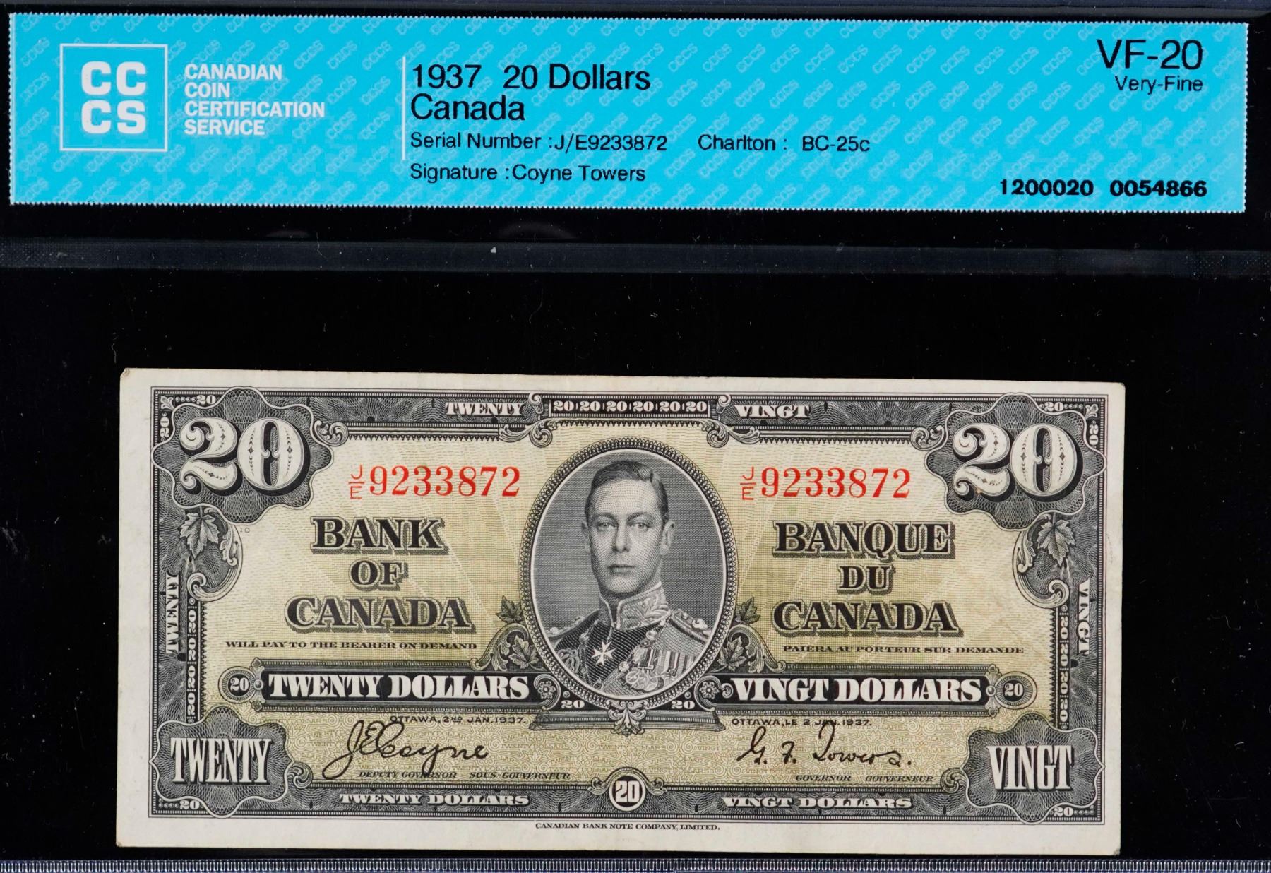 1937 $20 BC-25a, 25c, Lot of 2 notes CCCS VF20