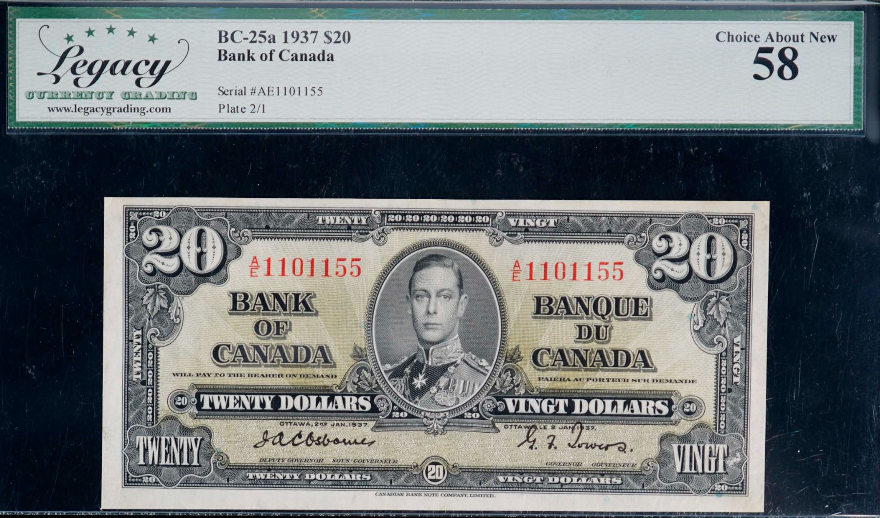 1937 $20 BC-25a #A/E1101155, Legacy Choice About Uncirculated-58.