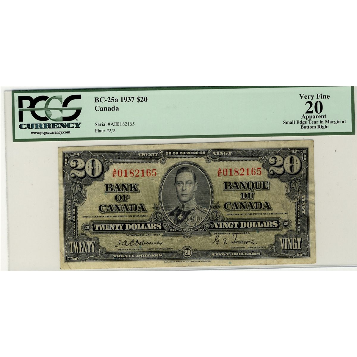 1937 $20 BC-25a #AE0182165 PCGS VF20 Apparent. Sml edge tear.